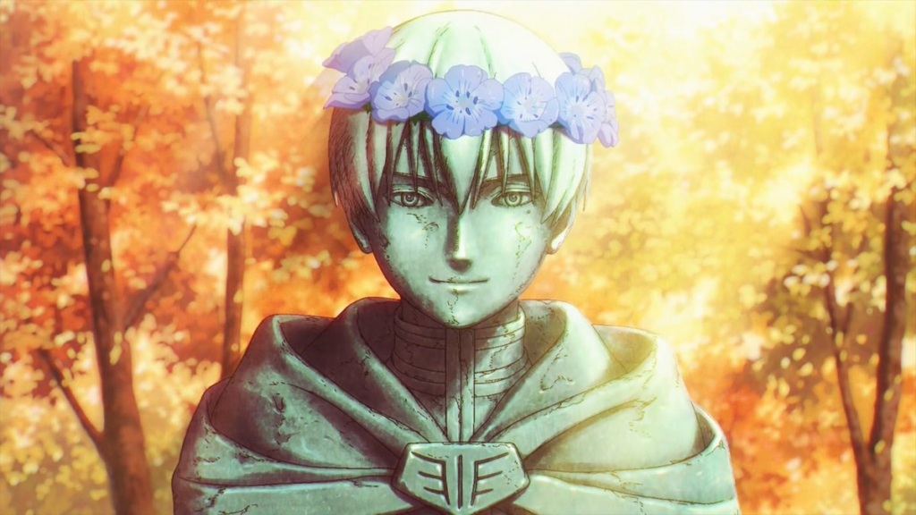 Um exemplo legal dessa reinterpretação aparece quando Frieren decide buscar uma rara flor conhecida como “blue-moon weed” para ornamentar a estátua de Himmel. À primeira vista, parece mais um capricho meio trivial, seis meses de busca por algo que talvez nem exista. No entanto, essa busca revela um movimento interno muito mais profundo já que Frieren não está apenas procurando uma flor, mas revisitando uma memória que, no passado, lhe passou despercebida. Himmel desejava mostrar essa flor para ela, mas nunca teve a oportunidade e Frieren nunca ligou para isso. Agora em sua busca, ela passa a atribuir um novo valor a um momento que antes parecia insignificante. Assim como nós, que muitas vezes só compreendemos o peso emocional de certas experiências com o passar do tempo, Frieren aprende que o passado não é fixo, ele se transforma conforme nossa capacidade de senti-lo e entendê-lo muda. A flor deixa de ser um objeto e se torna uma ponte entre quem ela foi e quem ela está se tornando.