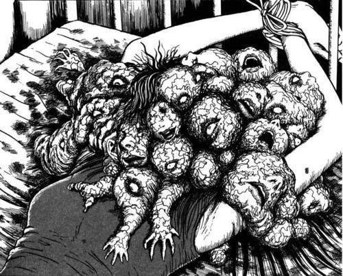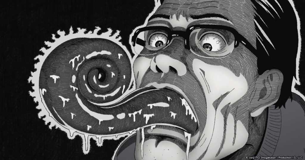 As criações de Ito não são monstros no sentido tradicional, elas são conceitos metamorfoseados em carne. Tomie, a garota que não pode morrer e se multiplica infinitamente, não é apenas uma criatura sobrenatural, ela é a manifestação visual de obsessão e vaidade destrutiva. Da mesma forma, as espirais hipnóticas de Uzumaki não são simplesmente padrões geométricos, são também a representação de ciclos viciosos, compulsões que se enrolam sobre si mesmas até consumir tudo. Cada “monstro” em seu repertório é simultaneamente repulsivo e fascinante porque carrega um significado conceitual embutido em sua forma.