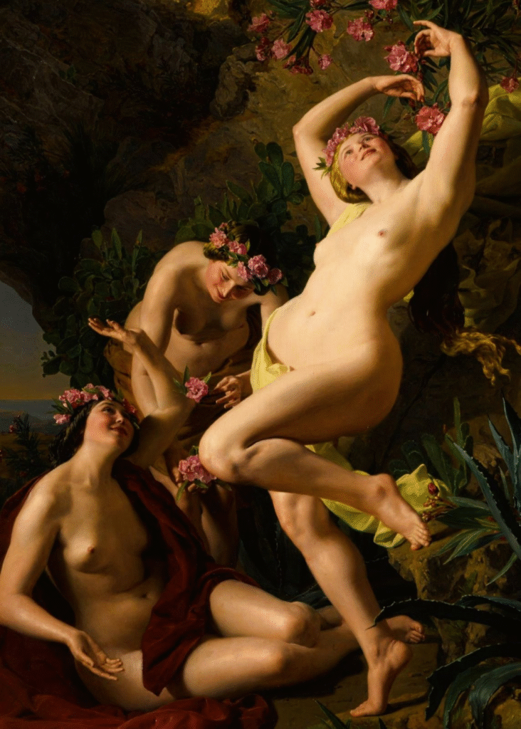 O Renascimento italiano marcou um renascimento não apenas artístico, mas também filosófico e cultural, com o resgate dos ideais clássicos da Grécia e Roma. Neste contexto, as Três Graças ressurgiram com força total como símbolos da harmonia e da perfeição estética. Artistas como Sandro Botticelli, em sua obra-prima “Primavera” (1482), retrataram as Graças dançando em um jardim paradisíaco, vestidas com tecidos translúcidos que revelam e ocultam simultaneamente suas formas delicadas.